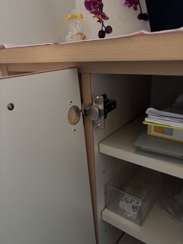 壊れてドアが外れている状態だったため、部品をつけ直して修理。 再度使えるようになりました。