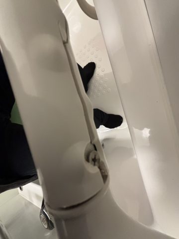ビス穴からまっすぐにひびが入って破損しており、新しいものに交換。 安全に掴まれるようになりました。