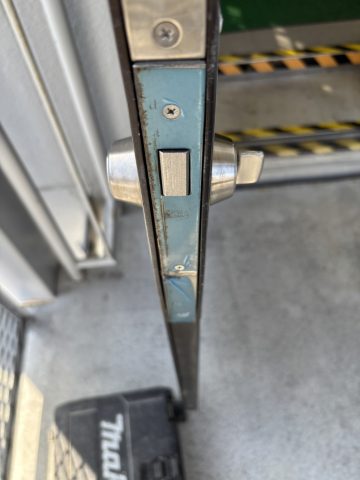 ビスがゆるんでいたため、締め直して修理。 無事、カギが締まるようになりました。